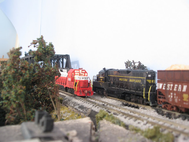 The Fast Freight element is being modeled using a more or less continuous loop that runs between two hidden staging yards by way of the yard at Ridgeley. While the actual Ridgeley Yard near Cumberland was a relatively minor yard on the WM, I'm using the name for a yard that is really a composite of Ridgeley and Knobmount at the west end of the Cumberland Extension, and Hagerstown, the real nerve center of the railroad.